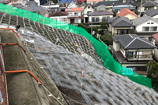 我が社は、法面保護工事のプロフェッショナルとして、経験豊富なスタッフが確実な施工に努め、自然と共存しながら安心して暮らしていけるよう、皆様の安全な暮らしを支えていける企業を目指しております。