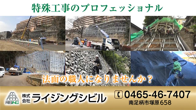 私たちは、神奈川県南足柄市を拠点に、県西地区を中心に法面保護工事を専門に手掛けている会社です。